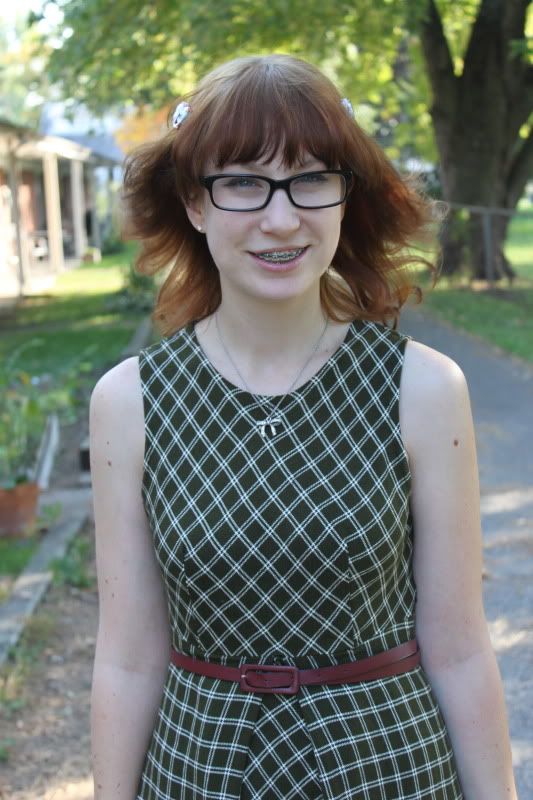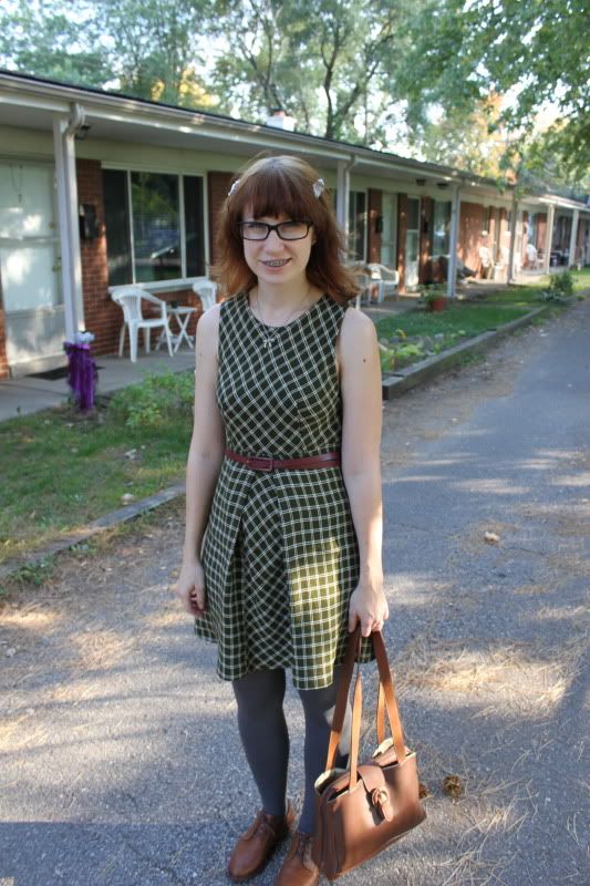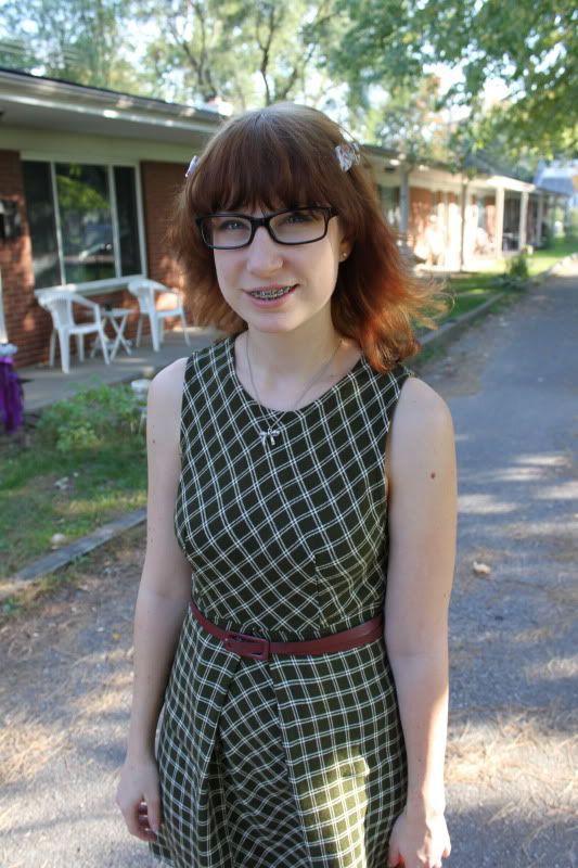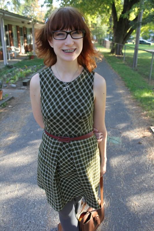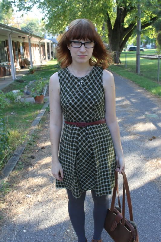 Onto this dress! Kyle got this for me at a garage sale over the Summer for only $3! I love 1960's style and although it looks a little like a school uniform, I really liked it, so Kyle haggled them down to three bucks and voila! New dress pour moi :) The material is pretty thick, but I cannot wait to layer it up for the colder months. I have so may cute clothes to style up for this blog, but only a few minutes with that guy with the camera, we are always in a hurry and have different schedules. A little birdy told me that there are cheap tripods at Target, I might have to investigate this...